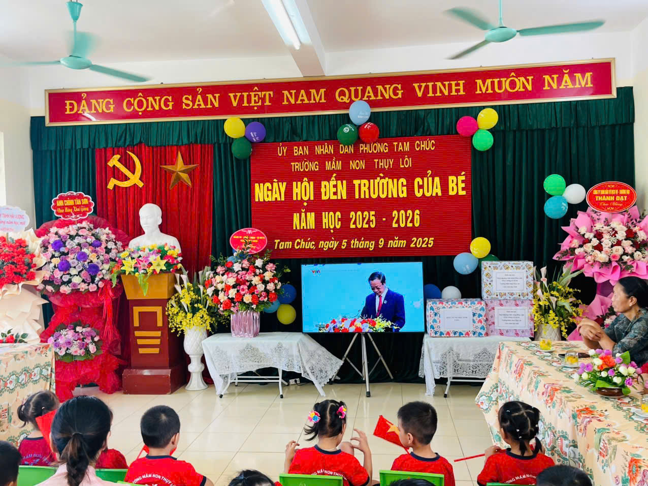 Sáng ngày 5/9/2025 hòa trong không khí tưng bừng phấn khởi của những ngày mùa thu lịch sử, kỷ niệm 80 năm cách mạng tháng Tám thành công và Quốc khánh 2/9, kỷ niệm 80 năm thành lập Bộ Quốc gia giáo dục (nay là Bộ GD&ĐT) và ngày hội toàn dân đưa trẻ đến trường. Các thầy giáo, cô giáo, học sinh và trẻ mầm non phường Tam Chúc hân hoan dự lễ kỷ niện 80 năm thành lập Bộ quốc giáo Giáo dục (nay là Bộ GD&ĐT) và khai giảng năm học mới 2025 - 2026.